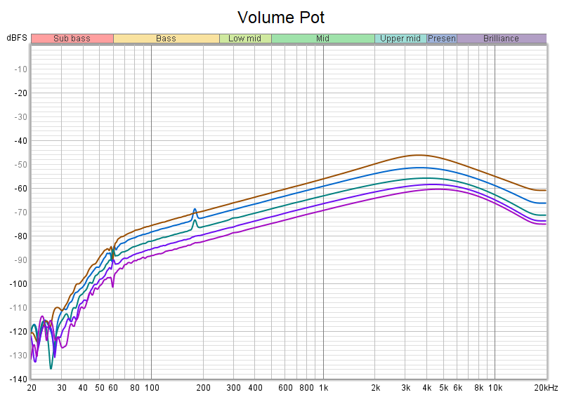 다음은 볼륨 레벨을 조절해가며 얻은 그래프입니다. 볼륨 레벨을 낮추면 피크지점이 오른쪽으로 조금씩 옮겨집니다.